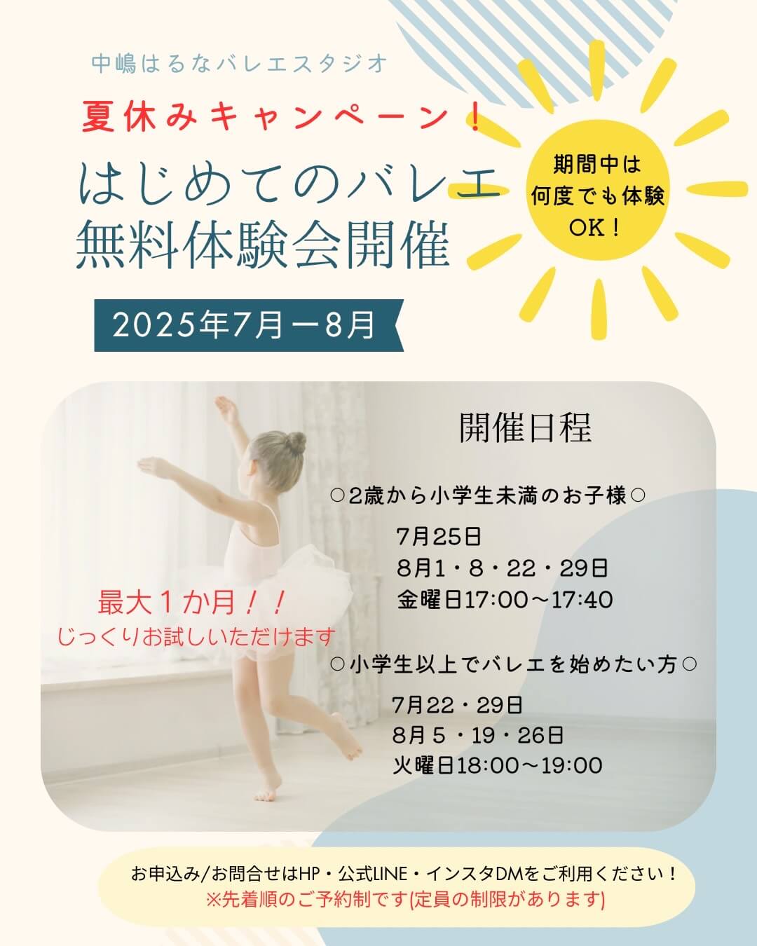 【夏休み限定】はじめてのバレエ無料体験会を開催します!(2025年7月〜8月)
